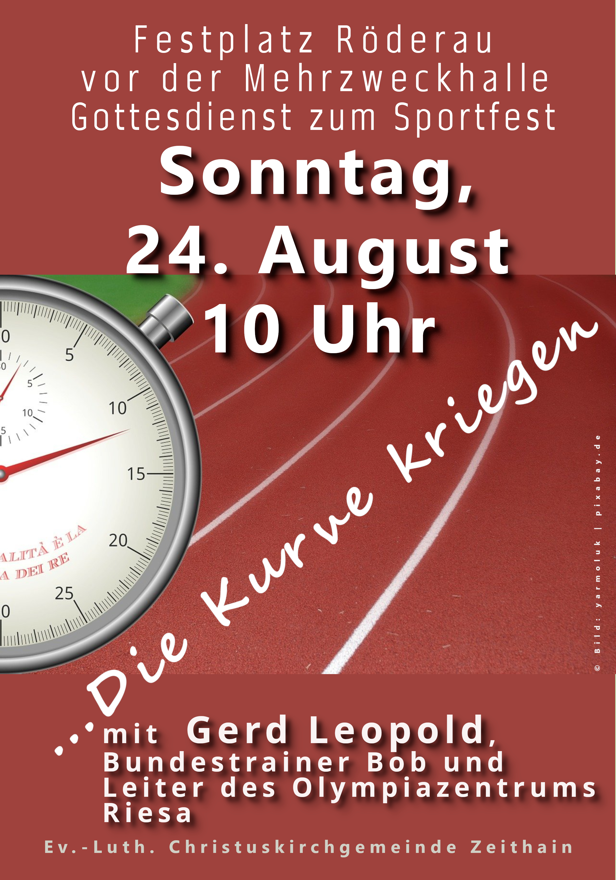 Am Sonntag, 24. August, um 10 Uhr feiern wir einen einen besonderen Gottesdienst auf dem Festgelände vor der Mehrzweckhalle in Röderau. An diesem Wochenende ist in Röderau sportlich und kulinarisch wieder viel los.